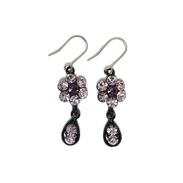 カラーストーンのお花に揺れる雫がぶら下がったキュートなピアス