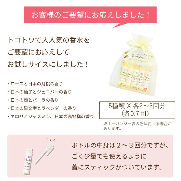 オーガニック香水 お試し5種の香りセット レディース メンズ ミニボトル 小さいサイズ 小分け ローズ 柑橘系 バニラ ラベンダー ジャスミン ネロリ 柚子