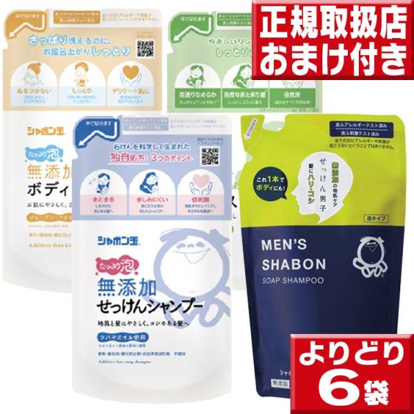 シャボン玉石けん 無添加せっけんシャンプー リンス ボディソープ つめかえ用 よりどり6袋