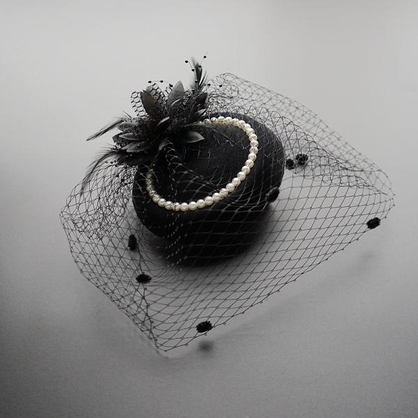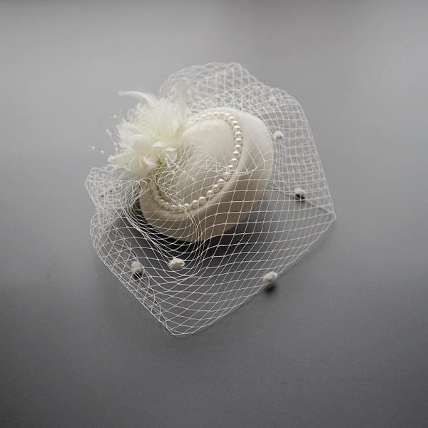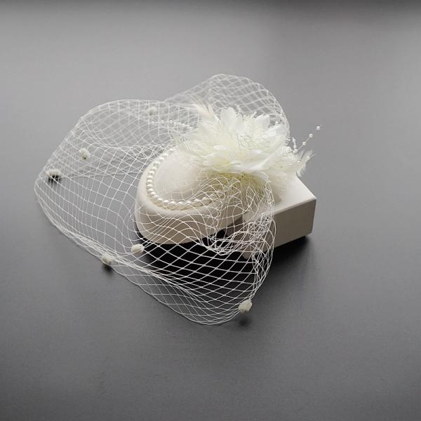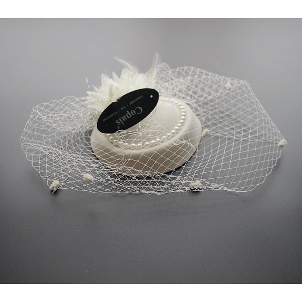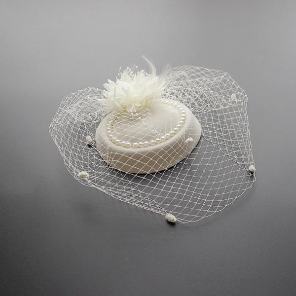 短納期 カクテル帽 パール付き トーク帽 ベール付き フォーマル ウェディングヘッドドレス 髪飾り オフホワイト 冠婚葬祭 ミニハット トークハット