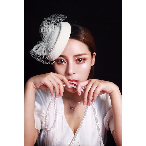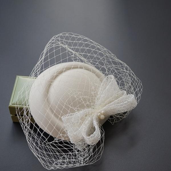 短納期 カクテル帽 トーク帽 ベール付き フォーマル ウェディングヘッドドレス 髪飾り オフホワイト 冠婚葬祭 ミニハット トークハット オフホワイト