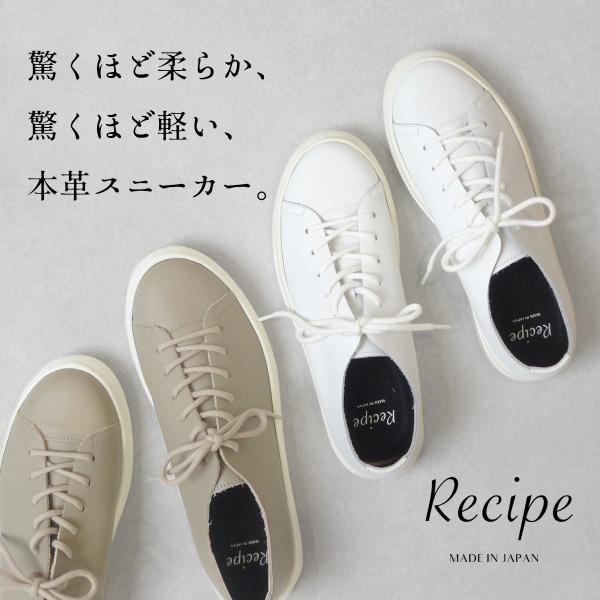 スニーカー レディース 40代 50代 白 グレージュ レザースニーカー 日本製 本革 軽量 スニーカー Recipe レシピ RP-330 RP-335 2E相当