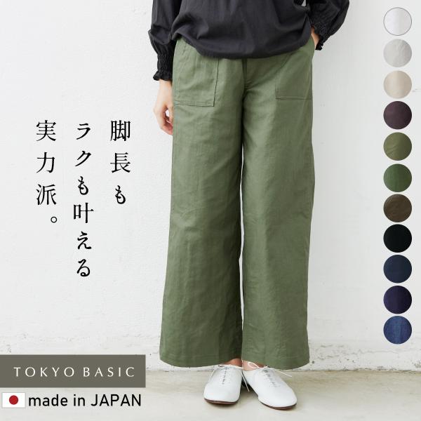 ワイドパンツ レディース イージーパンツ リネン パンツ 40代 50代 日本製 リネン&コットン ベイカーワイドパンツ