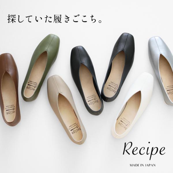レシピ 靴 recipe フラットシューズ レディース 軽量 50代 日本製 本革 Lカット スリッポン RP-204 RP204 痛くない 歩きやすい