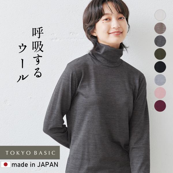 メリノウール タートルネック レディース 薄手 リブ インナー チクチクしない ミラクル ウール100% 日本製