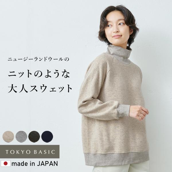 トレーナー レディース 長袖 スウェット 40代 50代 ニュージーランド ウール リブ使い タートル トレーナー 日本製