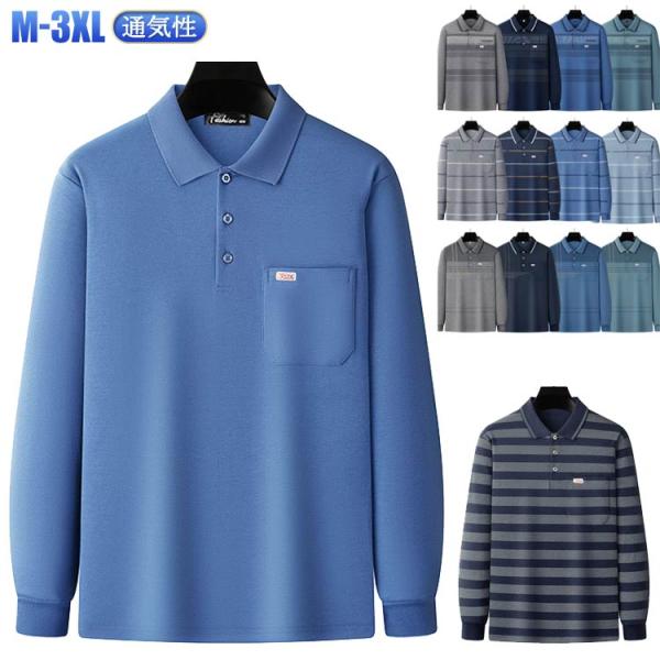 ポロシャツ メンズ 長袖 綿 コットン トップス 春 秋 ゴルフウェア シンプル 無地 胸ポケット付き おしゃれ カジュアル 大きいサイズ 大人 スポ