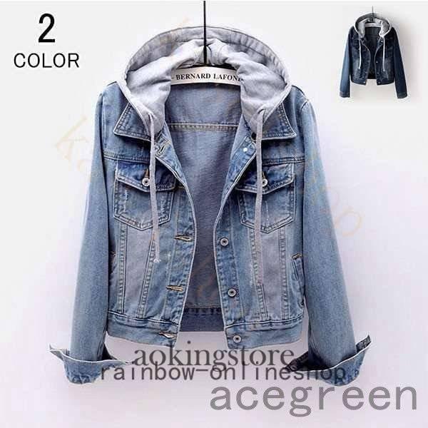 デニムジャケットレディースGジャンジージャンデニムジャンパーブルゾン羽織デニム綿コットン長袖フード付きドロップショルダー