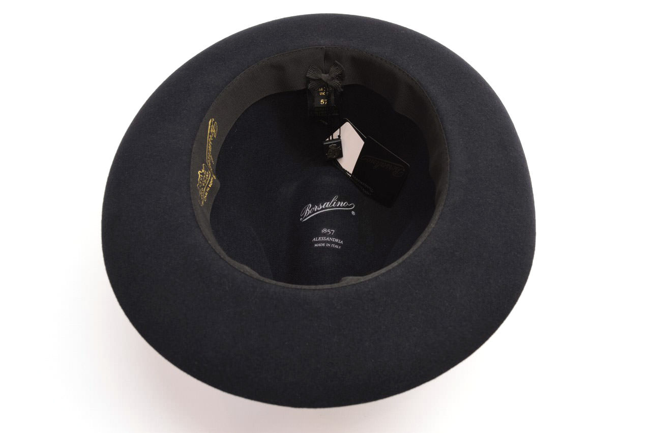 高品位ファーフェルトの柔らかな手触り、風合いに、ボルサリーノ特有の優しげなラインを描く、センターデントフォルム。