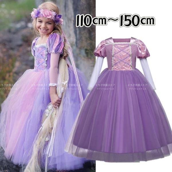 子供ドレス ラプンツェルプリンセス長袖ドレス コスプレ衣装 塔の上の ラプンツェル 風ドレス 子供用 ハロウィン 誕生日 プレゼント発表会 110cm〜150cm