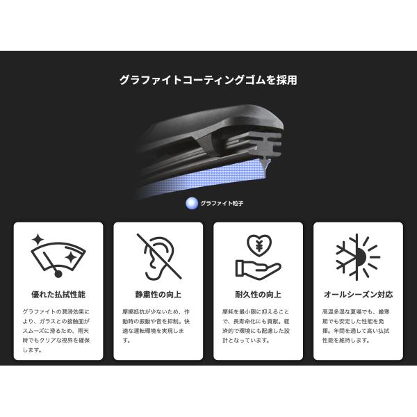 ・ウィンドディフレクターを装備、走行時の風圧を利用し、均一にブレードラバーを密着させ高速域での浮き上がりを防止
