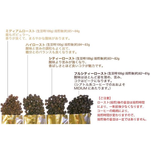 【ご注意】 ロースト(焙煎)後の量目は焙煎時間により、一割前後少なくなります。