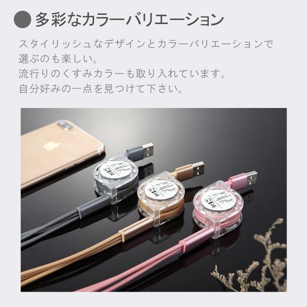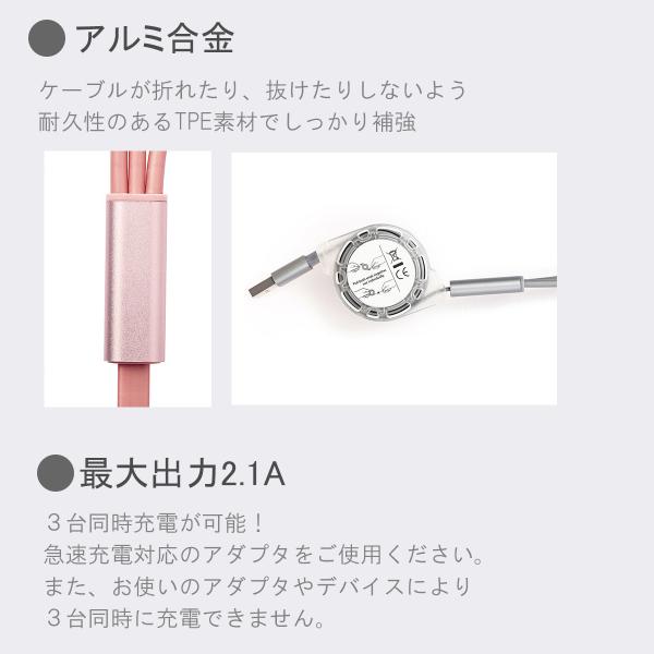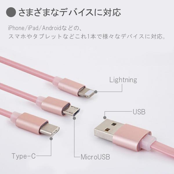 充電ケーブル iPhone Android 3in1 type-c タイプC 巻き取り スマホ 急速充電 ライトニングケーブル Lightning microUSB かわいい おしゃれ 1m