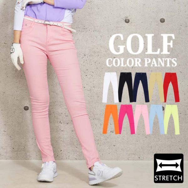 ゴルフパンツ レディース ゴルフウェア ストレッチ 無地 おしゃれ カラースキニーパンツ 美脚 スリム 大人 かわいい 春夏 秋冬