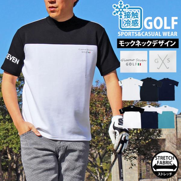 ゴルフウェア ハイネックシャツ メンズ モックネック 接触冷感 GIORNO SEVEN ジョルノセブン ストレッチ 半袖 無地 ロゴ 切替 トップス ポロシャツ 春夏