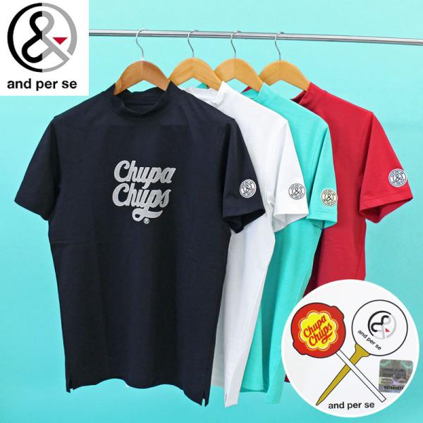and per se アンパスィ ゴルフウェア メンズ モックネックシャツ 半袖 チュッパチャプスコラボ 吸汗速乾 ストレッチ ブランド おしゃれ 春夏