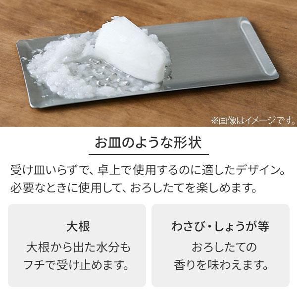 縁が立ち上がったお皿のような形状で、大根のような水分が出やすい食材もそのままおろすことができます。調理の際も水気をこぼさずに使用できるのでキッチンを汚しません。