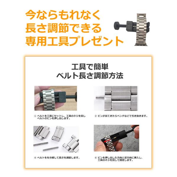 付属器具で、簡単にApple Watchバンドの長さ調整が可能。サイズの心配がなく、ご購入後、すぐお使い頂けます。プレゼントにも最適です。