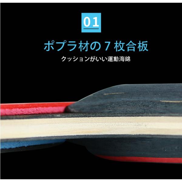 <br>【最高品質】 卓球用ラケットは7層のポプラ材から出来ており、ラバーは2.0mmです。卓球用ボ ールに対して優れたコントロール、スピン、スピードを発揮します。卓球大会での攻めと守りに適し ています。卓球用ボールに対して優れたコントロール、スピン、スピードを発揮します。