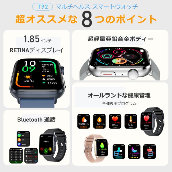スマートウォッチ 通話機能 レディース メンズ 24時間健康管理 1.85インチ 歩数計 消費カロリー 心拍数 着信通知 睡眠モード 天気予報 母の日