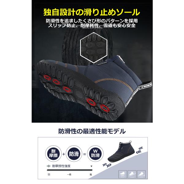 <br>【滑り止め】ゴム滑り止め底、ノンスリップ、耐摩耗性、ソールはくさび形のパターンを採用された。雪の中に歩きやすいです。