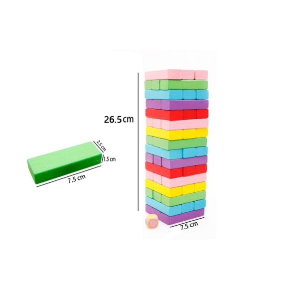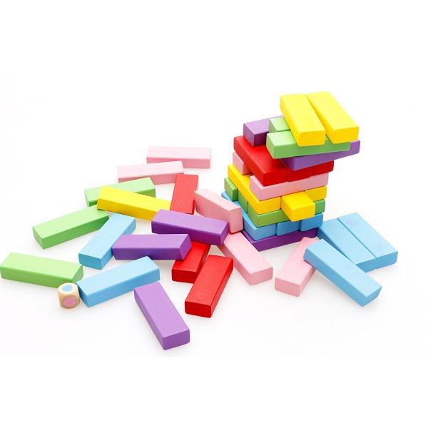 積み木 木製 バランスゲーム 立体パズル 積み木ブロック ドミノブロック テーブルゲーム 子供も大人も老若男女楽しめる おもちゃ 6カラー 48PCS サイコロ付き