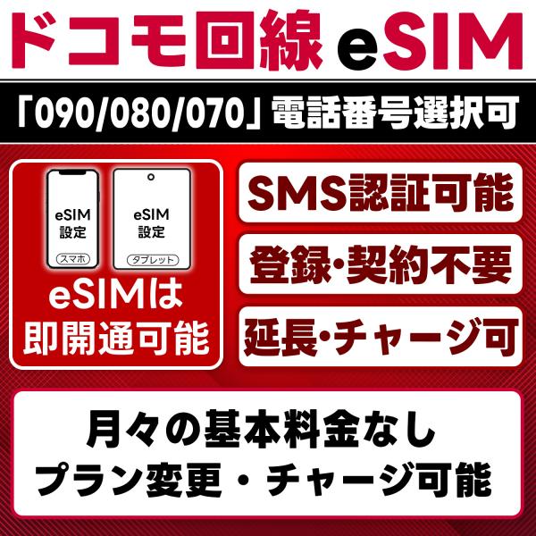 eSIM版【SMS認証可】docomo プリペイド eSIM 即日開通 SMS受信のみ 4G/LTE ドコモ回線網 データ専用・繰越/延長/チャージ/残量確認/再発行可 LINEサポート