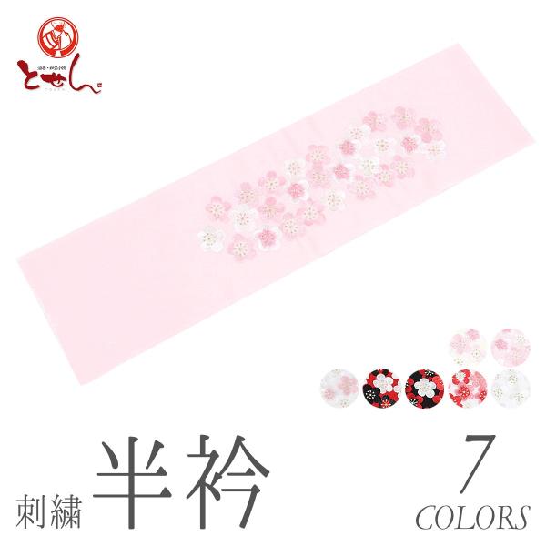 メール便送料無料 女物 刺繍 半衿 シルエリー 洗える 新合繊 ポリエステル 着物 振袖 晴れ着 お正月 お参り 初詣 クリーム ピンク 白 黒 赤 日本製 半襟 レディ