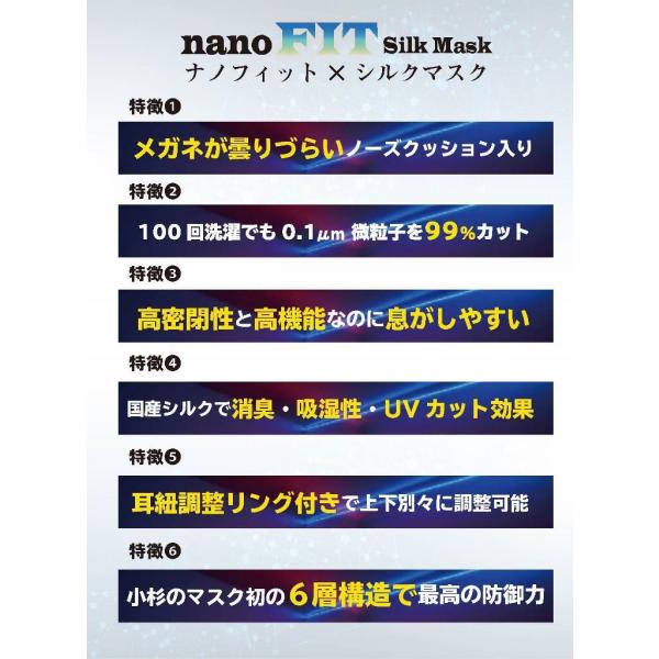 小杉織物 ナノフィット シルクマスク 高機能 ウィルス捕集率 オールシーズン用 大人用 抗菌 抗ウイルス ナノマスク ナノファイバー 医療従事者に好評 6層構造
