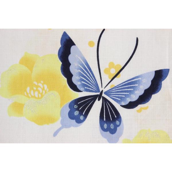 浴衣 レディース 対応可愛い 綺麗 大人 お洒落 花柄 白 黄色 蝶々 変わり織り シルバーラメ入り 夏 着付け