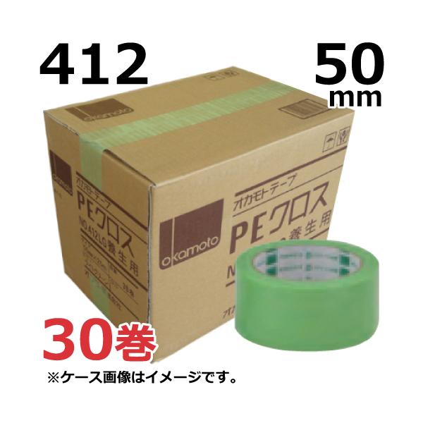 養生テープ オカモト PEクロス No.412 (ライトグリーン) 50mm×25m 30巻入×1ケース|緑 50mm 仮止め 手で切れる 塗装 DIY 防災 引っ越し
