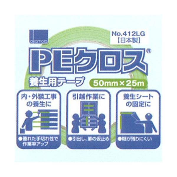 養生テープ オカモト PEクロス No.412 (ライトグリーン) 50mm×25m 30巻入×1ケース|緑 50mm 仮止め 手で切れる 塗装 DIY 防災 引っ越し