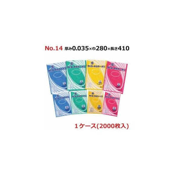 タイヨーのカラーポリ No.14 (LLD着色規格袋) 0.035×280×410mm 2000枚入 (ブルー/グリーン/イエロー/レッド)《法人宛限定》