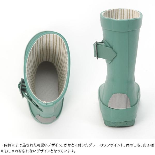 ・内側にまで施された可愛いデザイン。かかとに付いたグレーのワンポイント。雨の日も、お子様のおしゃれを忘れないデザインとなっています。