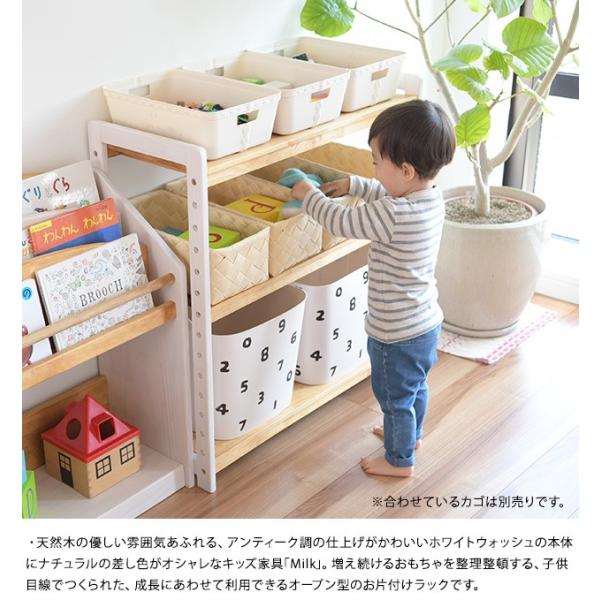 おもちゃ 収納 ラック 棚 こどもと暮らしオリジナル Milk お片付けラック トイラック お片付け 絵本棚 木製 天然木 3段