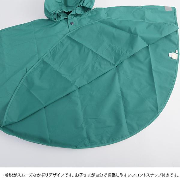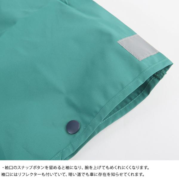 ・袖口のスナップボタンを留めると袖になり、腕を上げてもめくれにくくなります。袖口にはリフレクターも付いていて、暗い道でも車に存在を知らせてくれます。 レインコート ランドセル対応 キッズ 子ども 子供 男の子 女の子 シンプル おしゃれ 雨合羽 かっぱ 小学生 幼稚園 保育園