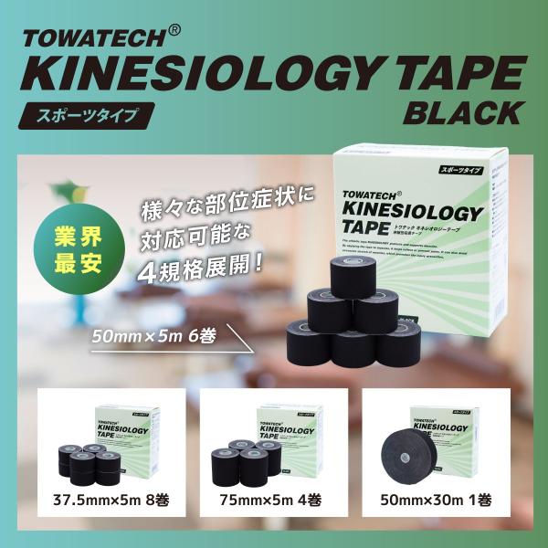 トワテック キネシオロジーテープ ブラック 幅50mm×5m×6巻 スポーツタイプ キネシオ キネシオテープ テーピング 黒 伸縮 捻挫 指 膝 足首 手首 肩 送料無料
