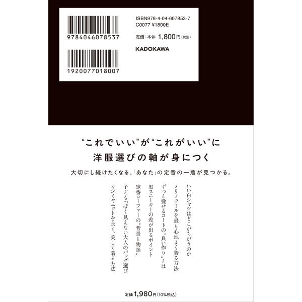 発売日:2026年01月16日/商品ID:7924829/ジャンル:DOMESTIC BOOKS/フォーマット:Book/構成数:1/レーベル:KADOKAWA/アーティスト:石川俊介/タイトル:なぜこの服は時代を超える定番なのか 一生モノの服の見極め方/タイトルカナ:ナゼコノフクハジダイヲコエルテイバンナノカ イッショウモノノフクノミキワメカタ