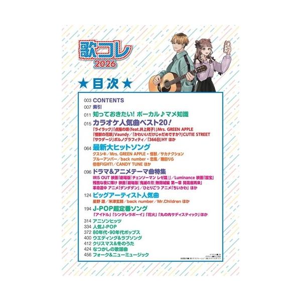 発売日:2025年12月04日/商品ID:7925209/ジャンル:DOMESTIC BOOKS/フォーマット:Mook/構成数:1/レーベル:シンコーミュージック/タイトル:歌コレ2026/タイトルカナ:ウタコレ2026