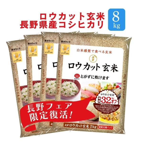 【限定復活】金芽ロウカット玄米 長野県産コシヒカリ 8kg (2kg×4袋) 送料無料 令和7年産 無洗米玄米 お米 玄米ごはん