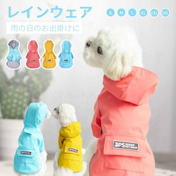 小型犬服 中型犬服 レインウェア ペットレインコート/雨具フード付きペットドッグウェア 散歩 お出かけ 犬の服 ペット用品 レイングッズ/雨カッパ/レインウエア