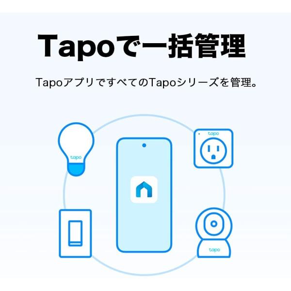 【どこからでも操作】 スマホで外出先からの操作。スマートフォン専用アプリ「Tapo」でアプリ上から直感的な設定/操作が可能。
