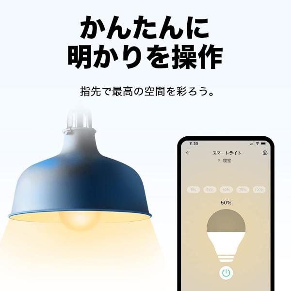 【音声で調光】 スマートスピーカーと一緒に使って、LED電球 を音声で操作。調光機能でムードを演出し、手軽におうちをスマートホーム化。