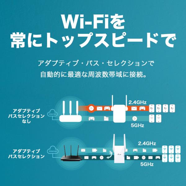 [特徴] Wi-Fi6対応 AX1800規格 中継機。最先端の技術で高速Wi-Fi通信を実現。