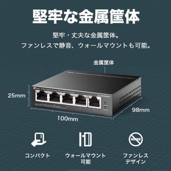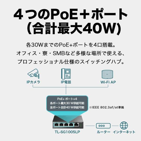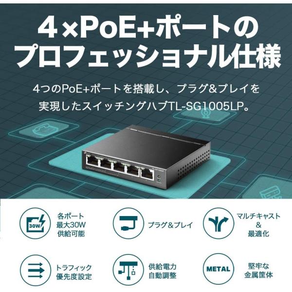 TP-Link スイッチングハブ 5ポート PoE+ (4ポートPoE+、各30Wまで) 合計40W対応 5年保証 TL-SG1005LP120ヵ国絶賛スイッチングハブ金属筺体