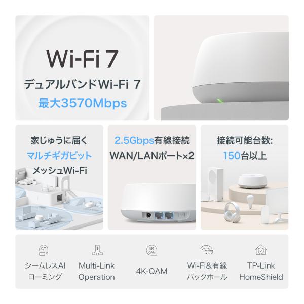 WiFi7 AIメッシュ 2882+688Mbps TP-Link BE3570 2台+1台 2.5Giga WAN/LANポート×2 MLO コンパクト IPoE IPv6 WiFiの死角をゼロに 3年保証 iphone16対応