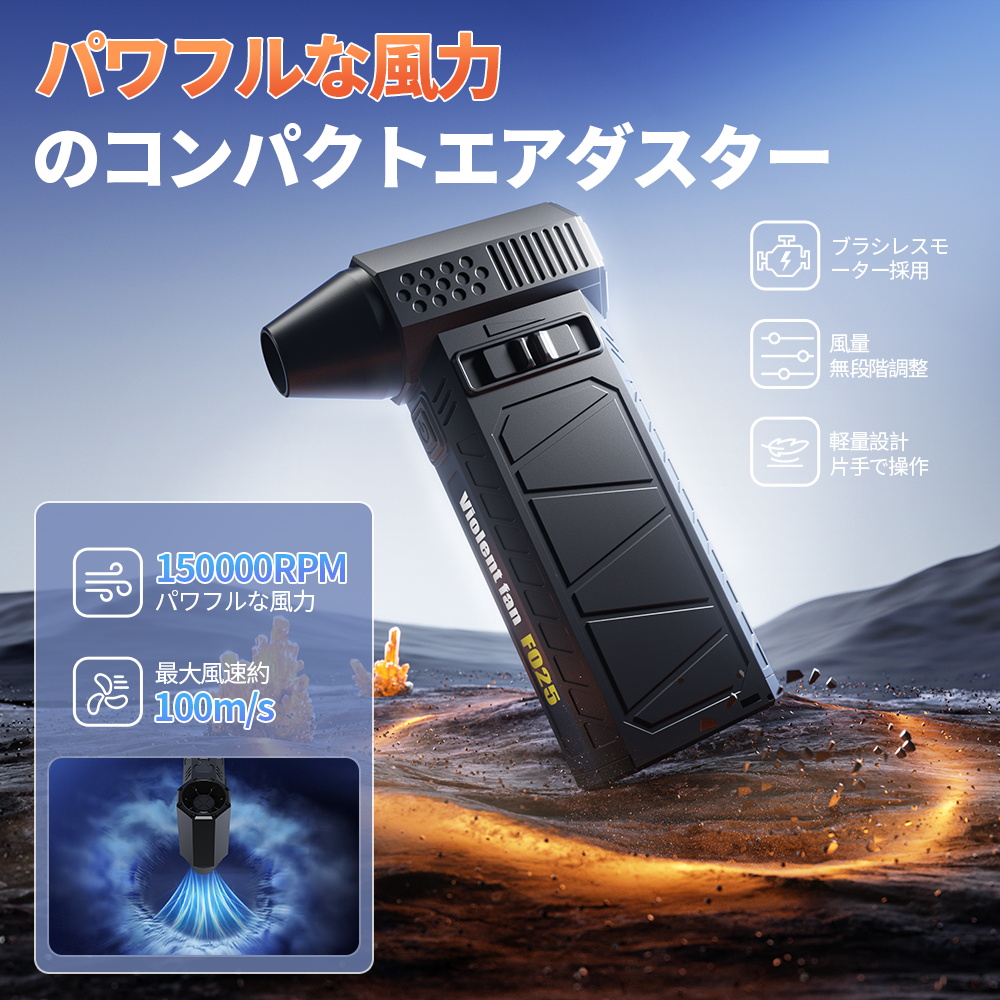 \クーポンで3,383円!/【8000mAh・ 風速100m/s】エアダスター 電動 150000RPM 無階段調節 充電式 小型 ノズル 空気入れ ガス不使用 (PC掃除/洗車) アウトドア