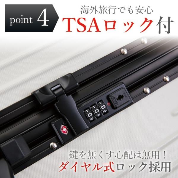 ・TSAロック搭載の強化アルミフレームタイプ。TSAロックは鍵不要のダイヤル式です。