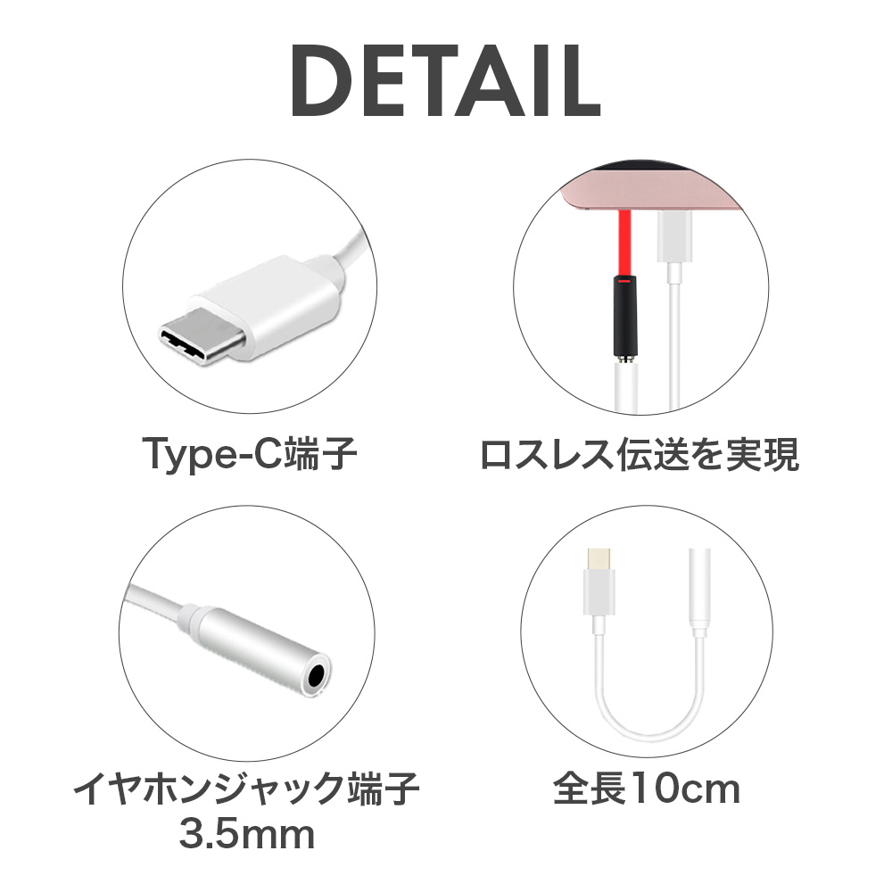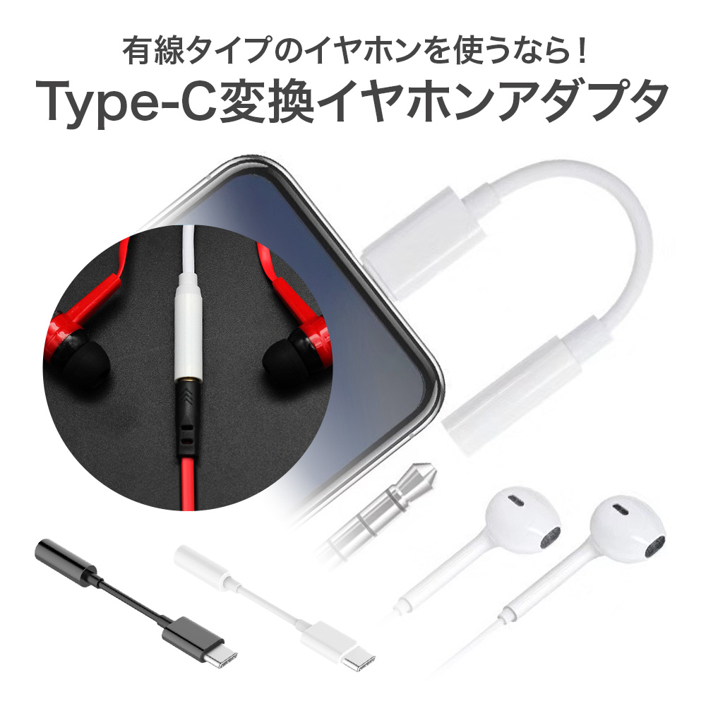 変換アダプタ Type-C イヤホンジャック 変換 白 黒 スマホ ケーブル 3.5mm オーディオ 音声 イヤホン ヘッドホン コネクタ