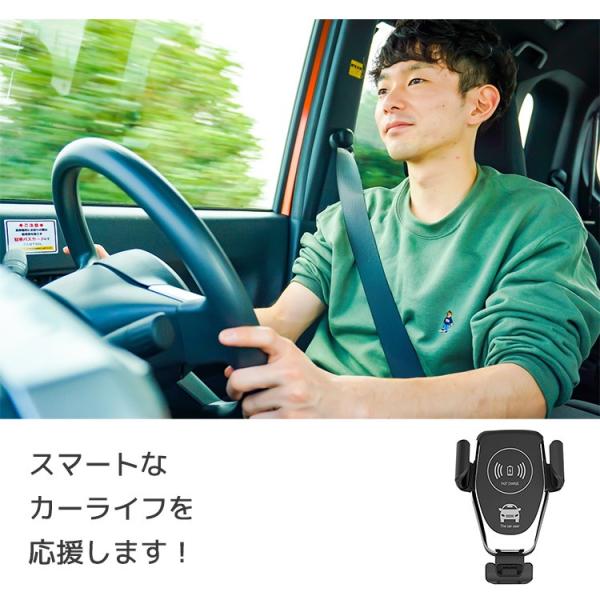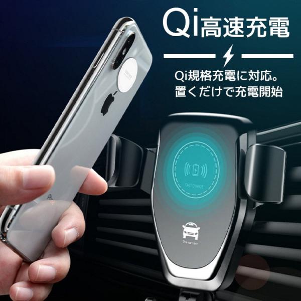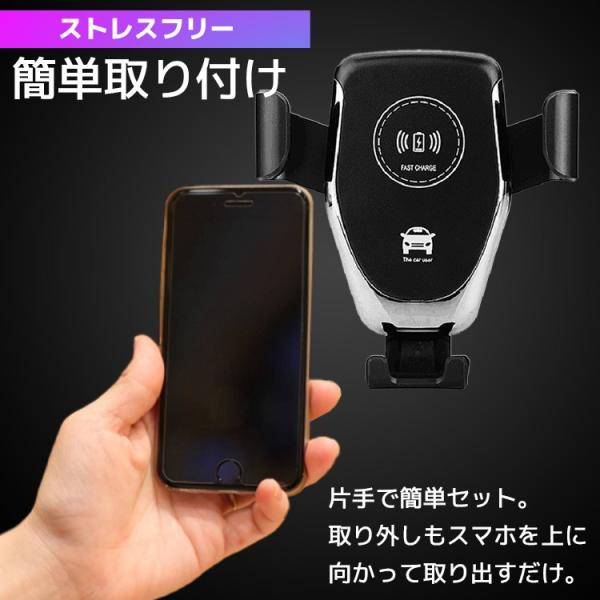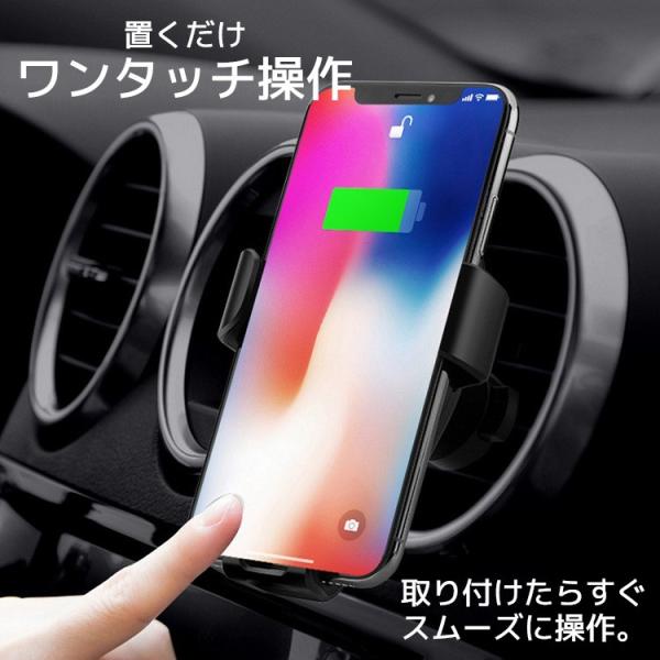 スマホホルダー 車 Qi ワイヤレス充電 シンプル 車載 急速充電 iphone スマホ アンドロイド カーチャージャー ワイヤレス 充電器 置くだけ充電 送料無料